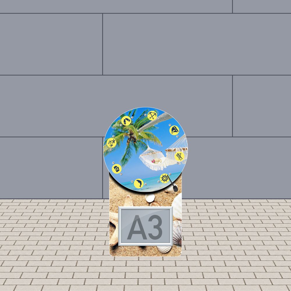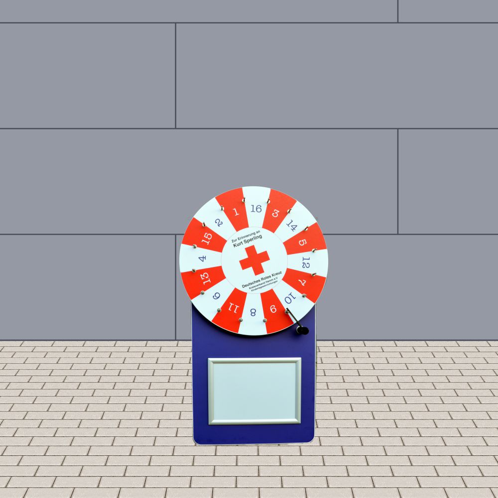Die kleine Ausführung von unseren großen Glücksrad Business. Das Glücksrad "Easy Outdoor“ - ideal für Outdoor-Promotioneinsätze. Professionelles Glücksrad mit Werbewand H 100 cm x B 60 cm, welche komplett mit Ihrer Werbung versehen werden kann. Glücksradscheibe aus 10 mm Kunststoff, weiß cnc-gefräst mit gefaster Kante. Inklusiv 4C/6C Digitaldruck mit sehr starkem, kratzfestem Schutzlaminat. Zwei wartungsfreie Hochleistungslager sorgen für einen sauberen Lauf der Glücksradscheibe, versteckte Befestigung der Glücksradscheibe – keine sichtbare Mittelschraube. Hochwertig gedrehte und durch den neutralen Farbton zu jedem Layout passende Edelstahlstopper (kein Korrodieren oder Abbrechen). Die Standsicherheit entsteht durch einen im Unterteil integrierten Klappständer sowie einen integrierten A3 Klapprahmen im Querformat für das schnelle Wechseln von Angeboten, Werbung, Neuigkeiten etc.