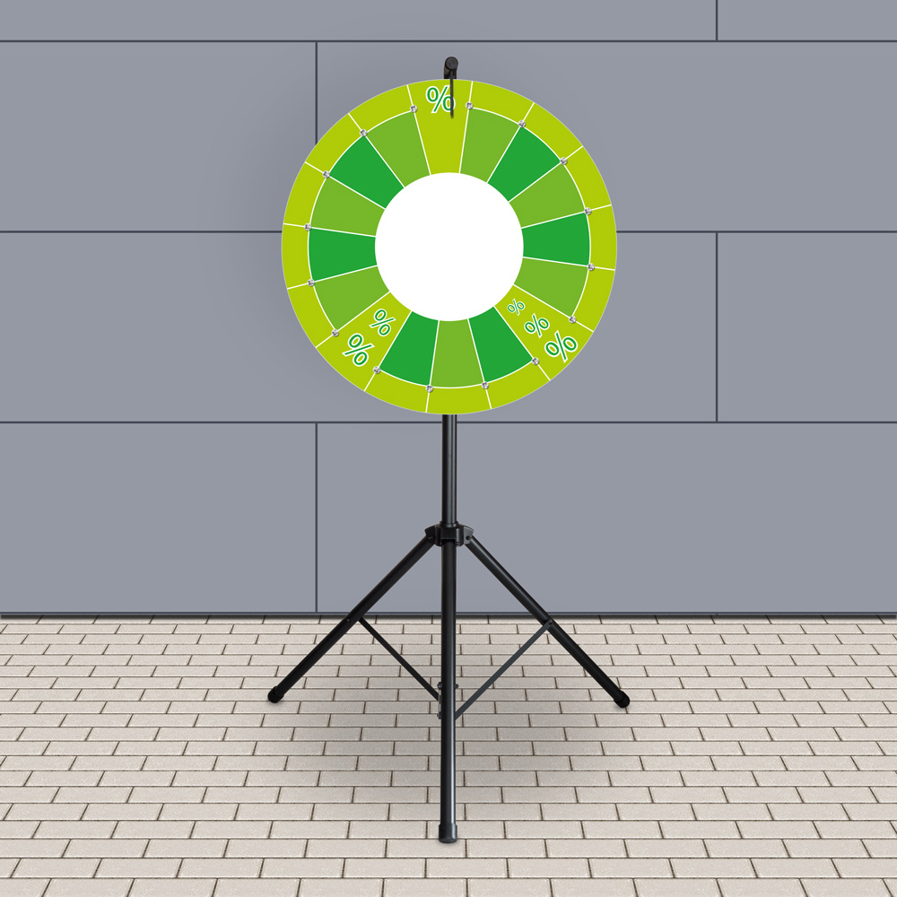 Bei diesem Promotion-Glücksrad ist der Name „Premium“ das Konzept. Unser meistverkauftes Glücksrad überzeugt durch eine hochwertige Ausführung, die ihresgleichen sucht. – Zu einem Preis, der seinesgleichen sucht. Egal, ob im Innen- oder im Außenbereich, egal bei welchem Wetter, egal bei welcher Veranstaltung: Unser Glücksrad „Premium“ ist Ihr idealer Kontakt- und Kundengewinner für Promotion, Messen, Präsentationen, Feste, Verlosungen, Events und mehr. – Wer es sieht, will es drehen …