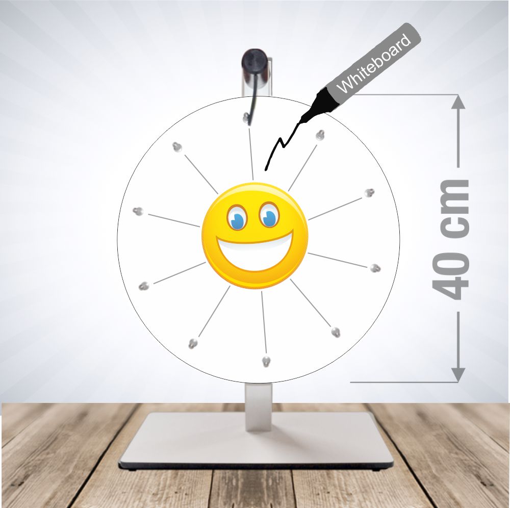 Whiteboards kennt jeder. Schnell sind Gedanken, Abläufe und Pläne auf einem Whiteboard festgehalten und genauso schnell können diese wieder entfernt oder geändert werden. So flexibel sind Sie nun auch mit unserem Tischglücksrad Pocket Whiteboard. Beschriften Sie Ihr Promotionmodul mit Produkten, Preisen, Gewinnfeldern oder lassen Ihren Gedanken freien Lauf. Durch die beschreibbare Glücksradscheibe mit einem Whiteboardstift ( nicht im Lieferumfang enthalten) können Sie die Beschriftung jederzeit anpassen.