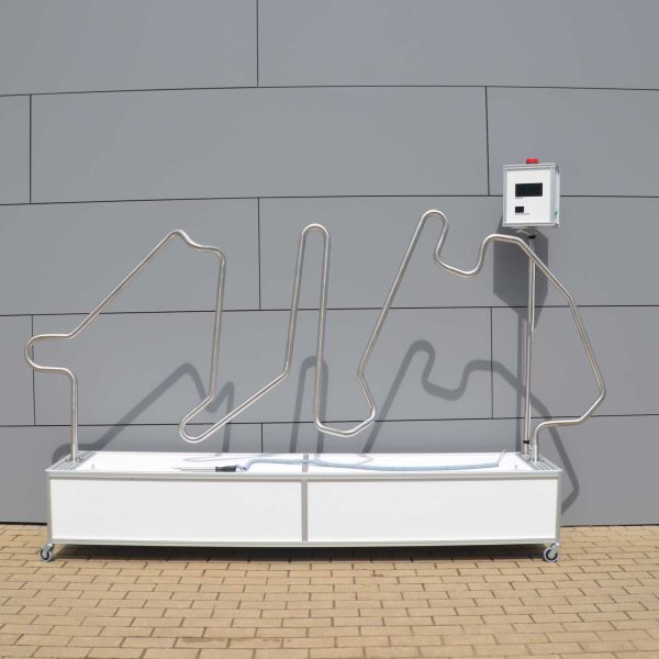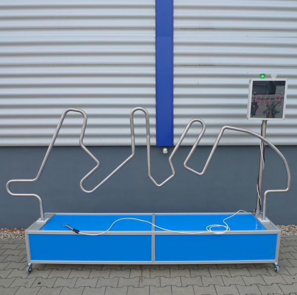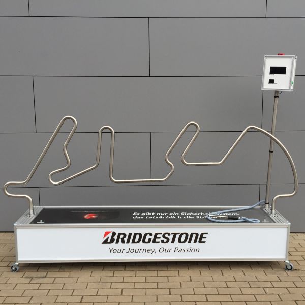 Exklusives Promotionmodul für Messen, Tag der offenen etc. zur Generierung von neuen Kunden in XXL Ausführung. Das Rahmengestell besteht aus eloxierten Aluminiumprofilen mit Kunststoffeinsätzen. Der "Heiße Draht" wird aus Edelstahl in Standardform gebogen bzw. auf Gehrung geschnitten und verschweißt. Weiterhin erhalten Sie eine abnehmbare Punkteanzeige, darin integriert eine 3-stellige Digitalanzeige, diese beginnt mit 999 und zählt langsam abwärts. Bei einer Berührung des Heißen Drahtes werden zusätzliche Strafpunkte abgezogen. Weiterhin ist eine 2-stellige Digitalanzeige integriert, diese zählt die Anzahl der Berührungen. Am Unterbau befinden sich Rollen für den optimalen Transport. Der Heiße Draht wird NEUTRAL ohn Druck geliefert. Ein Branding der unteren Flächen ist gegen Aufpreis möglich.