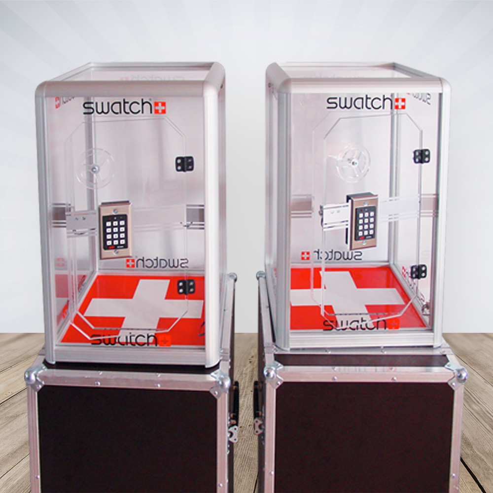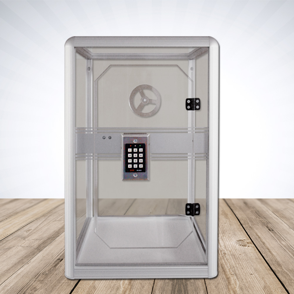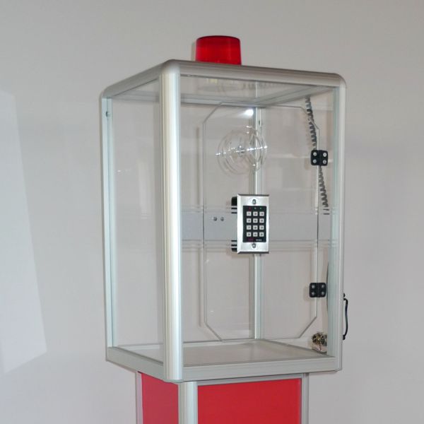 Das Tresorgewinnspiel "Alpha" ist ein Fun-Tresor. Der Korpus besteht aus eloxierten Aluminiumprofil mit Acryleinsätzen, die Seiten und der Deckel bestehen aus Acryl, der Boden besteht aus Kunststoff weiß, komplett computergesteuert CNC-gefräst sowie angebrachten Tresorgriff. Ein ständiger Wechsel des 4 - 8-stelligen Codes mittels Mastercode ist jederzeit möglich. Ohne Werbung / Beschriftung - aber gegen Aufpreis möglich.