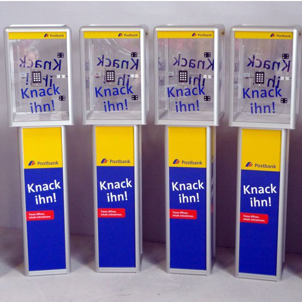Tresor-Gewinnspiele erfreuen sich immer mehr Beliebtheit auf Werbeveranstaltungen, Jubiläen, in Einkaufscenter etc. Diese Gewinnspiel wird gern zur Generierung von Neukunden verwendet, da jeder Teilnehmer seine Kontaktdaten und seinen persönlichen Glückscode auf eine Karte notieren muss. Wir unterscheiden zwischen zwei verschiedenen Kategorien: