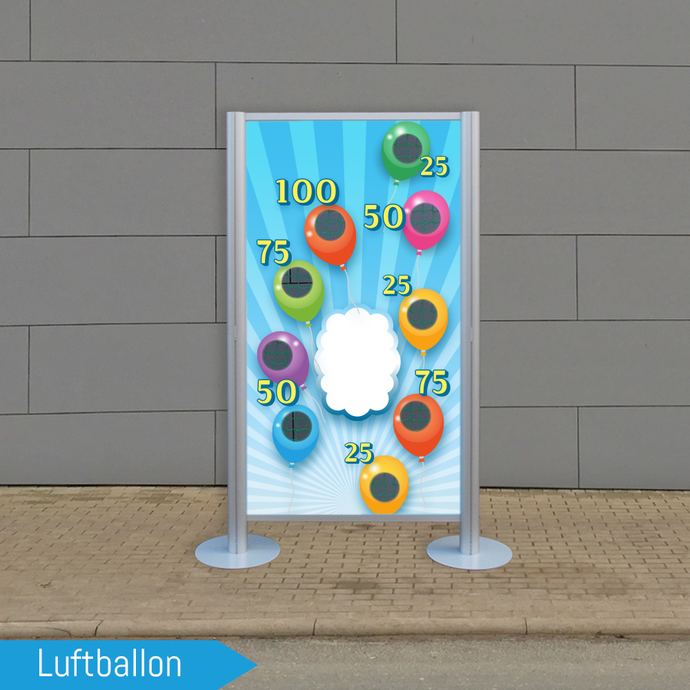 Exklusives Wurfspiel im Großformat bestehend aus hochwertigsten Materialen für Ihre Promotion. Wir verwenden kein Holz oder Ähnliches, somit ist das Geschicklichkeitsspiel auch im Außenbereich einsetzbar. Die geteilte Rückwand dient als riesige Brandfläche für Ihre nächste Aktion.